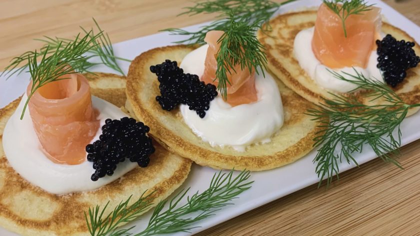 - Servir les blinis avec un peu de crème, du saumon et de l’aneth.