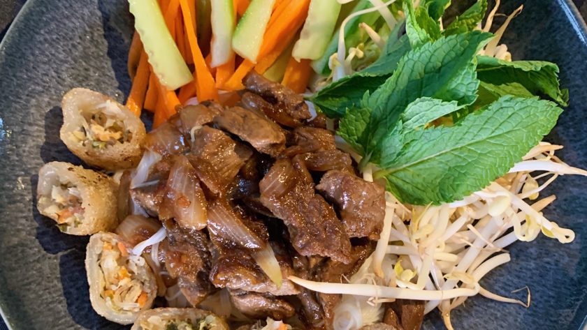 Le Bò bún est une spécialité vietnamienne. C’est un plat servi à température ambiante et est composé de vermicelles de riz, de viande de bœuf, de nems, des crudités et d’une sauce poisson sucrée.