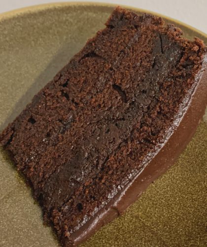 INGRÉDIENTS : Pour le cake : 2 œufs 400g de sucre 240ml de buttermilk 240ml de café 210g de farine 120ml d’huile végétale 90g de cacao en poudre non sucré 10g de bicarbonate 5g de levure chimique 5g de sel 5ml d’extrait de vanille Pour le glaçage : 1 jaune d’œuf 250g de beurre mou …