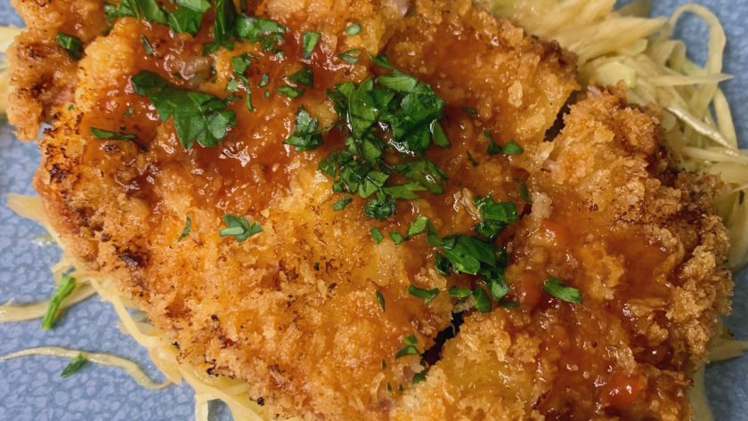 - Faire tremper les côtes de porc dans le mélange œuf-farine. Puis dans la chapelure. Faire frire 3 min de chaque côté. Retirer le tonkatsu de l’huile 1 min, puis replonger dans l’huile et cuire 1 min de chaque côté. Retirer la viande et placer sur du papier absorbant.